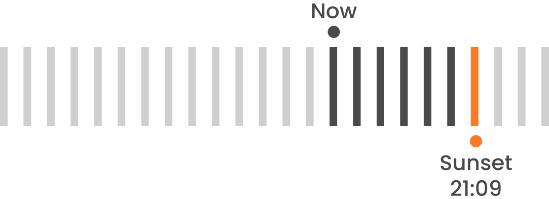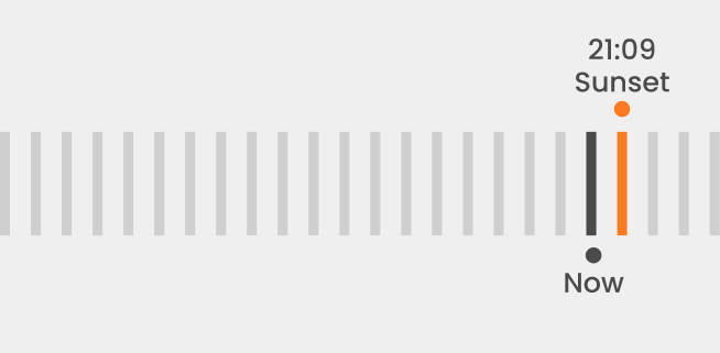 Previously, users had to look up and down to compare “now” and sunset. By aligning the markers with a natural reading direction, the comparison became quicker and more intuitive.
