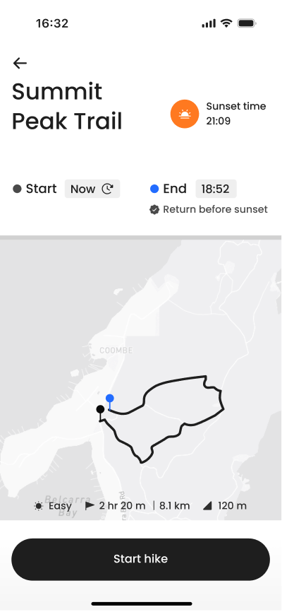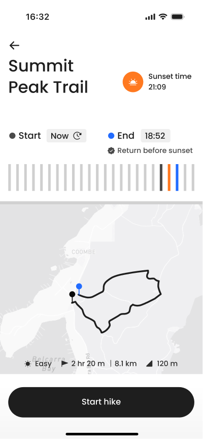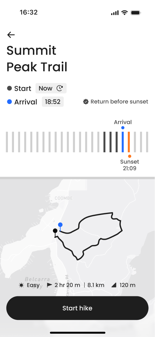 Safety design requires clear thresholds. Time buffers, weather limits, and trail status must be defined before the interface is built. Logic comes before visuals.