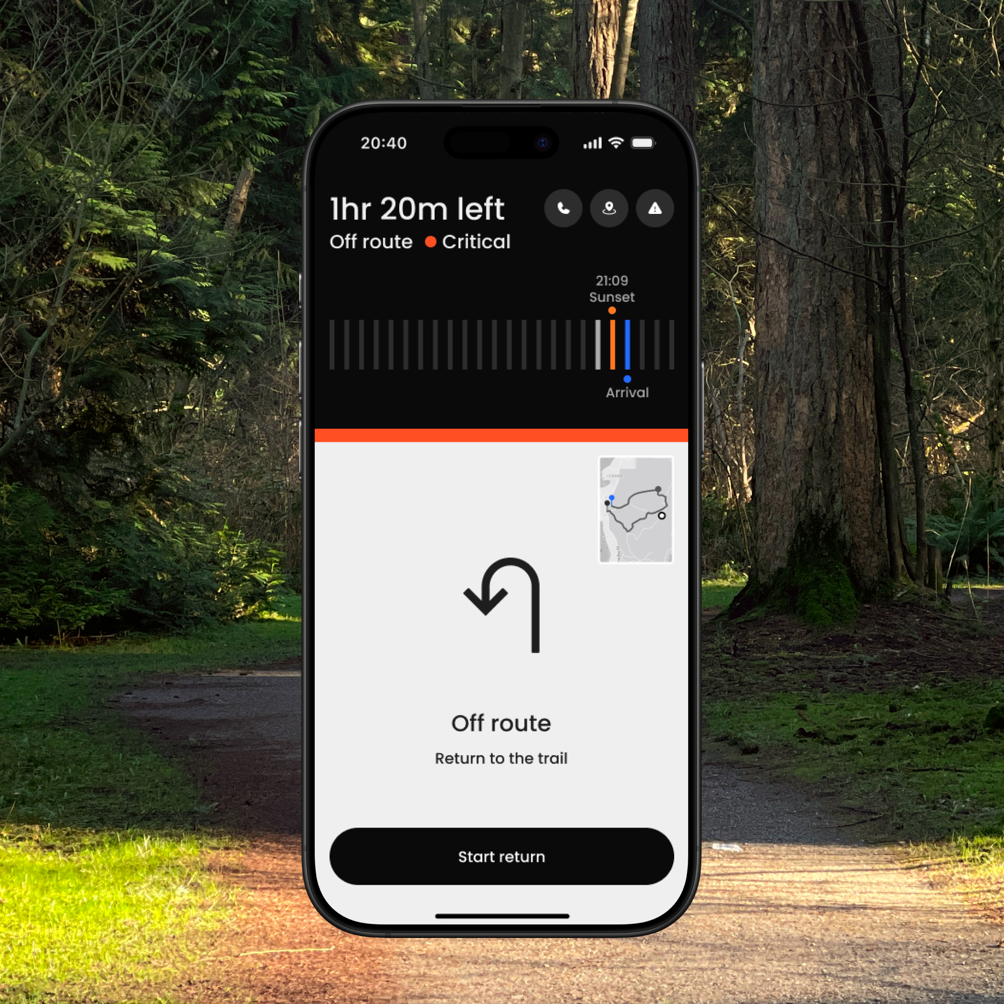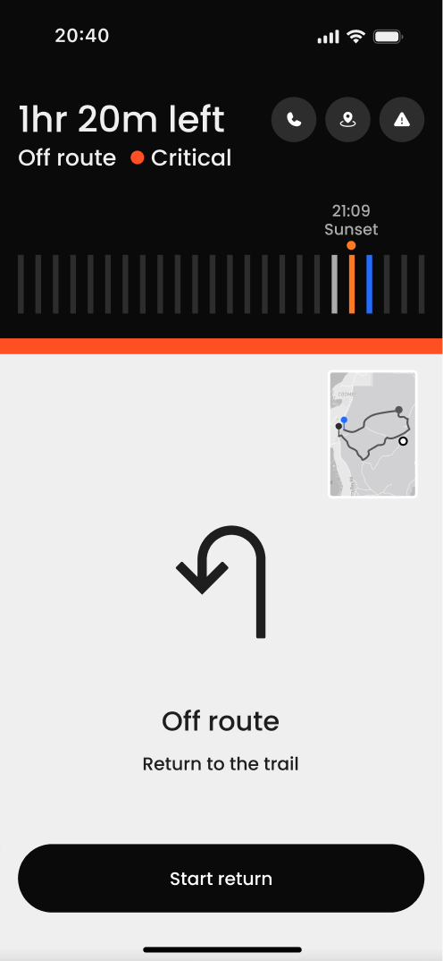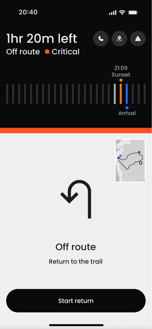From route guidance to state awareness. Instead of prioritizing the map, the interface prioritizes the safety state.